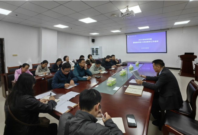 (通讯员:邱春玉,审稿:蒋汝刚、蔡飞)为落实学校实验教学规范化要求,保障实验教学质量,2025年10月20日,基础医学院在六楼会议室召开2025年秋季学期第二次教学工作会议,专题部署实验课专项教学检查工作。会议由分管教学的副院长蒋汝刚主持,各教研室主任、实验室主任、教学秘书及教学办全体人员参会。