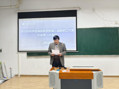 (通讯员:吴宁华,审核:晏彪程梦琳)2025年12月11日,基础医学院第二届教职工代表大会第一次会议在医药楼1栋307室召开。学校工会常务副主席梅贤臣、学院党政领导班子及全体教职工齐聚一堂,共商学院发展大计。会议由学院党委书记程梦琳主持。